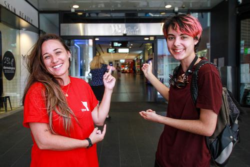 IMAGE CAPTION: Y NSW Youth Outreach and Inclusion Coordinator Elise Kellett and 20-year-old Mav from Parramatta invite local youth to come and shape the new Y Space