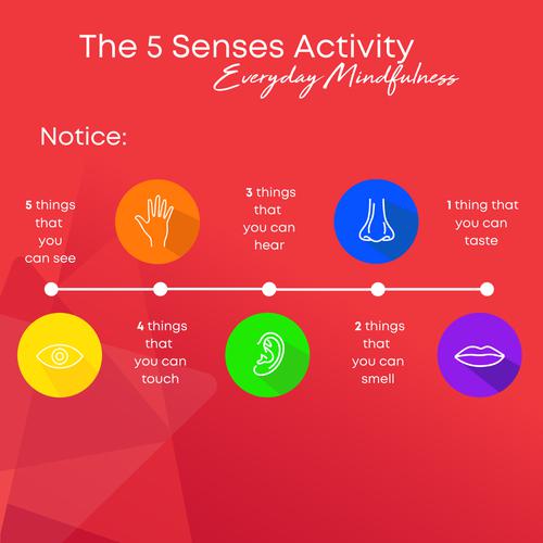 - Notice 4 things you can feel. Focus on the things you feel both inside and outside of your body. Such as the temperature, your closing, or the chair you are sitting on.
