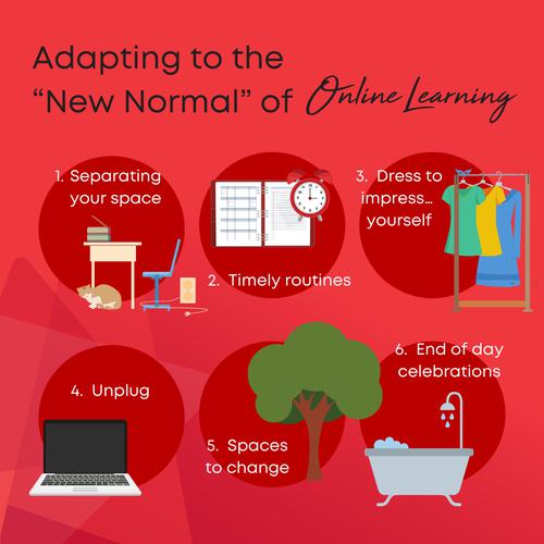 - Separating your space: When studying at home it can be hard to remain focused when you’re sitting in the middle of the kitchen or on the floor in front of your T.V…Setting up a designated study area in your home can be helpful to get organised for online learning.