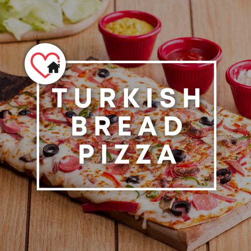 - Cut turkish bread in half lengthways and lay the halves out on baking tray. Spray with olive oil.